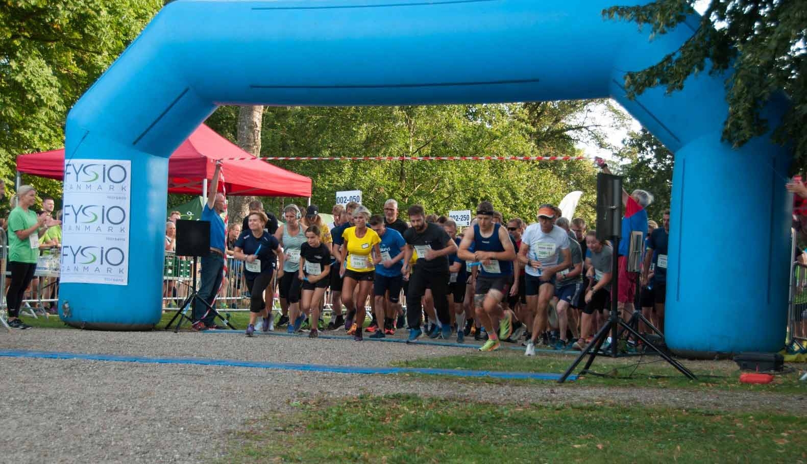 Ved start- og målportaler på stævnepladsen.